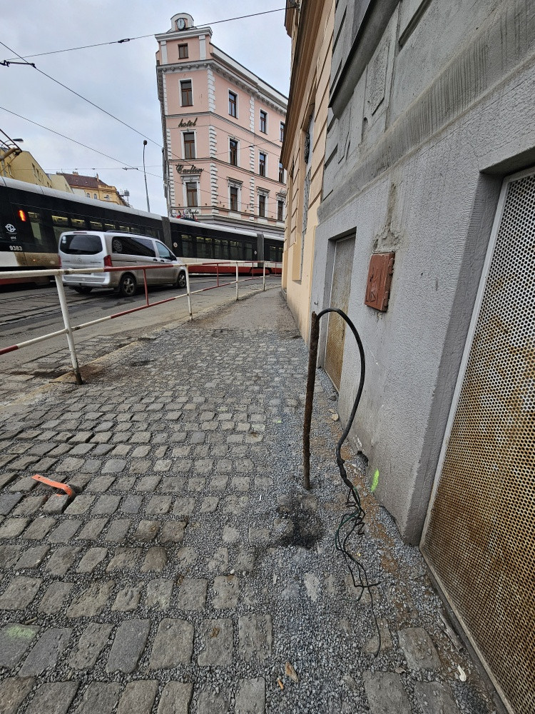 chodník je ve správě TSK, nahlásili jsme tedy jako neoznačené stavební práce. Požadavku byla v systému TSK přiřazena evidenční značka WRDSKRLU. Uvidíme co odpoví, když tak posuneme dál. Nepředpokládám ale, že by byl kabel pod proudem.