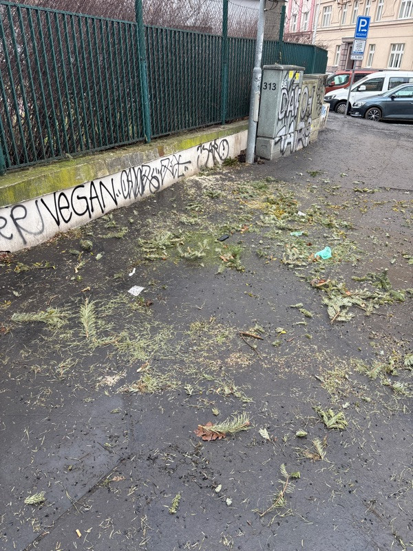 Neuklizene jehlici po odvozu vanocnich stromku.