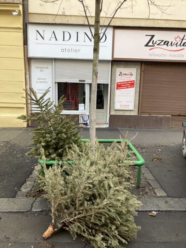 Prosím o uklid vanocnich stromků, jsou tam vyhozeny v ohradce u stromů od zacatku ledna. Řipská 16 a Řipská 18. Děkuji