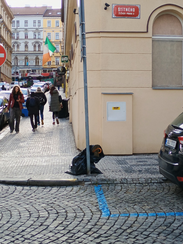 děkujeme za Váš podnět. Pytel je některé úklidové služby, která by jej měla do konce dne odvézt. Pokud by se tak nestalo, pytel odvezeme.