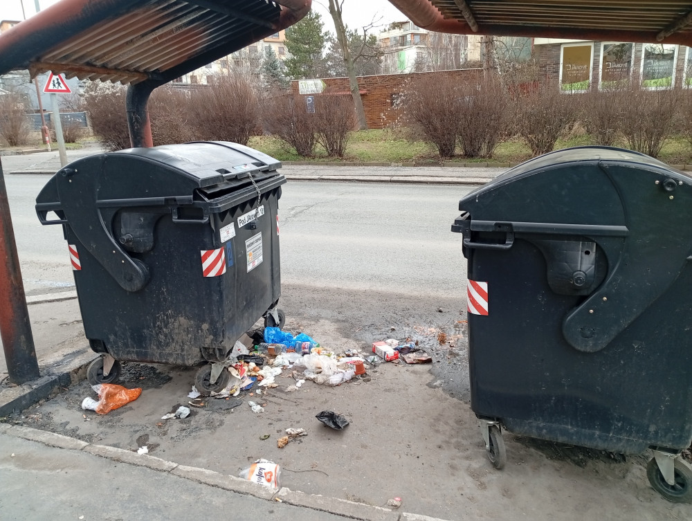 odpadky u popelnic.