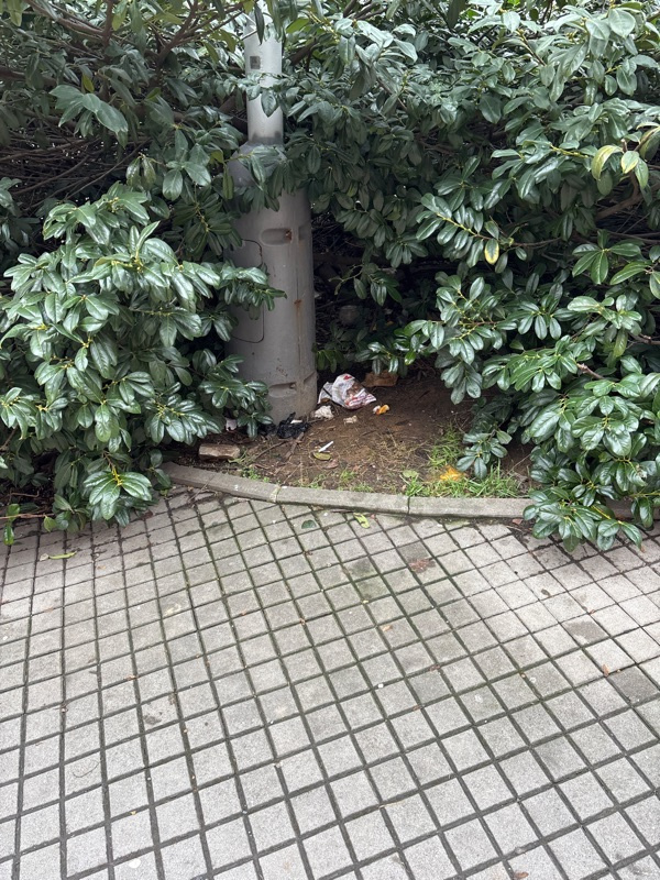 hlásím bordel se valí v křoví a podél chodníku. Stav na foto. Dekuju za předání a úklid.