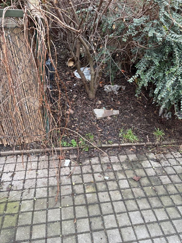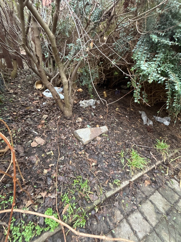 hlásím bordel se valí v křoví a podél chodníku. Stav na foto. Dekuju za předání a úklid.