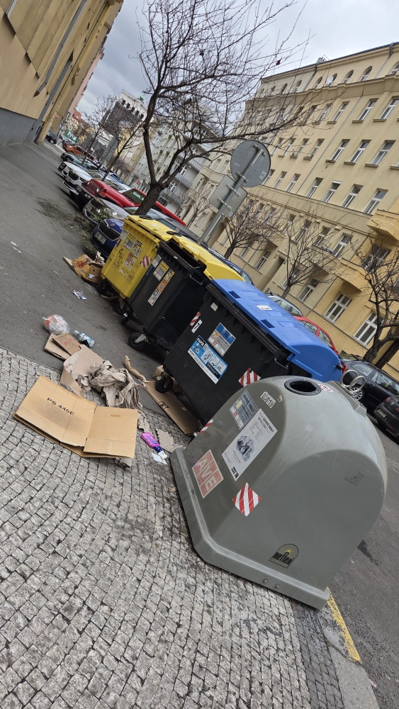 děkujeme za Váš podnět. Úklid jednotlivých stanovišť kontejnerů na tříděný odpad probíhá pravidelně podle stanoveného harmonogramu (od 6:00 do do 22:00 každý den včetně sobot a nedělí). Provedeme kontrolu a případně předáme podnět společnosti AVE CZ, která kontejnery na tříděný odpad vyváží a za pořádek kolem nich odpovídá.
