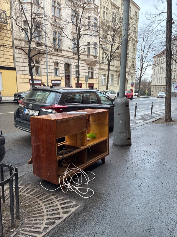 Rozbitý kus nábytku na chodníku. Prosim o likvidaci.