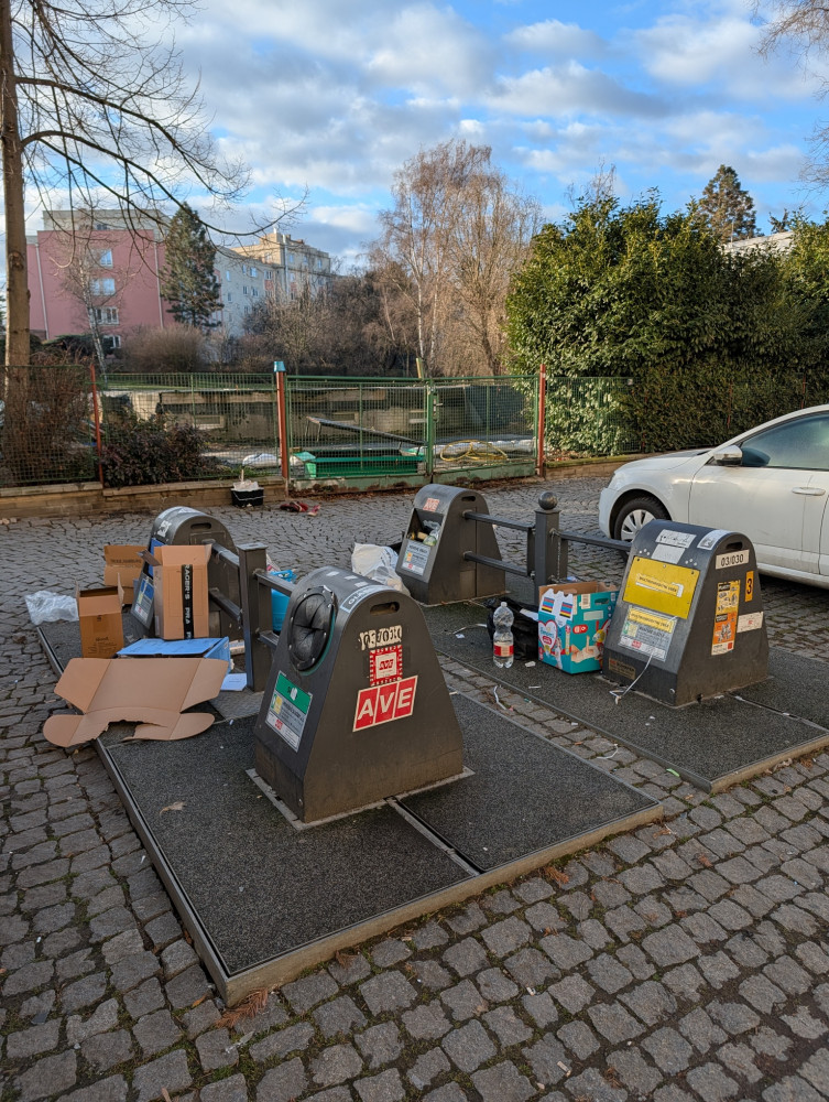 Z mého každodenního pozorování jednoznačně vyplývá, že kapacita tohoto stání selhává na denní bázi. Jak můžete vidět na dnešních fotografiích, tentokrát je kapacitně zcela vyčerpán (případně opět ucpán) jak kontejner na plasty, tak kontejner na papír.