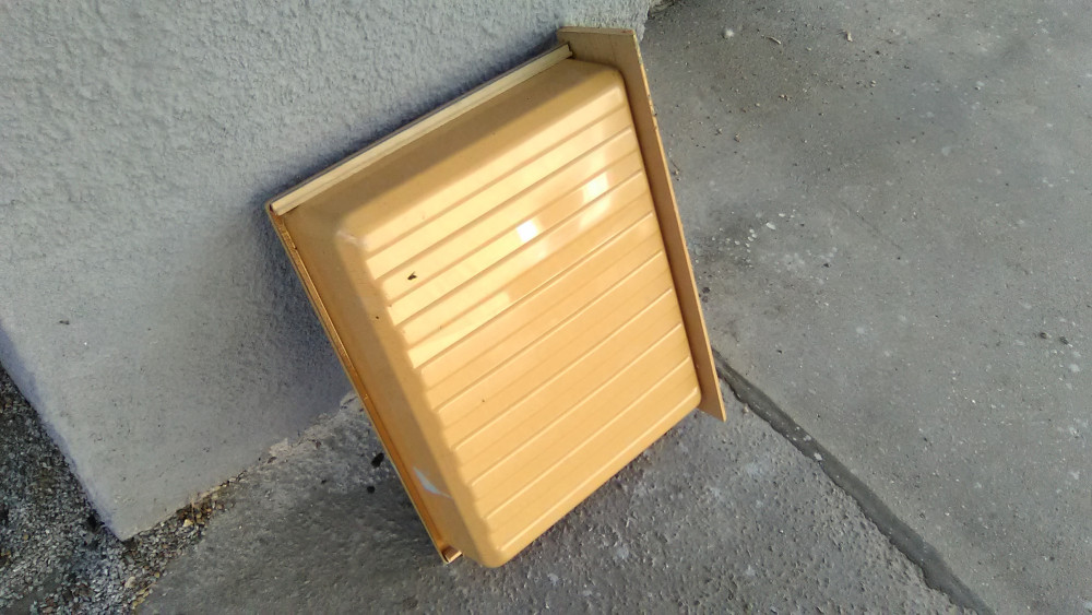 Odložený plechový šuplík.