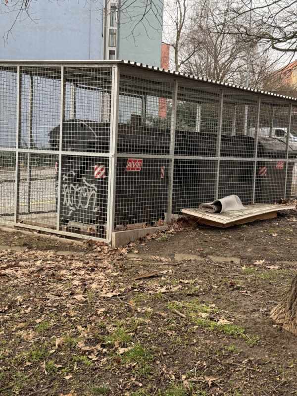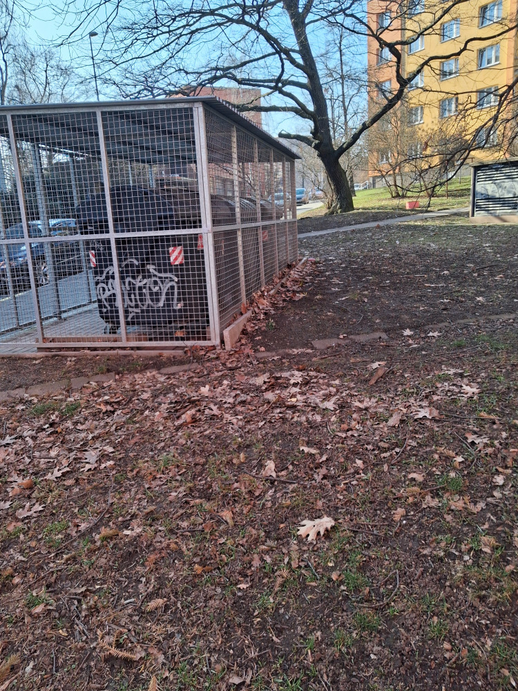 Dobrý den, prosím o úklid nepořádku za klecí s popelnicemi. Jde o materiál z vyklizeného bytu: dveře, koberec apod. viz foto. Díky
