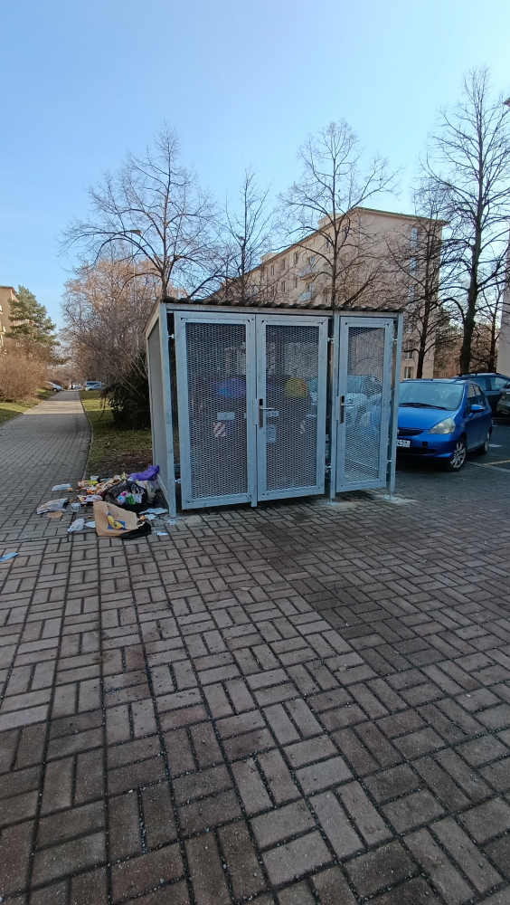Dobrý den! Znovu na stejné adrese Pod Lípami 2550/56 před kontejnerem nepořádek, nevim kdo to tak dělá.