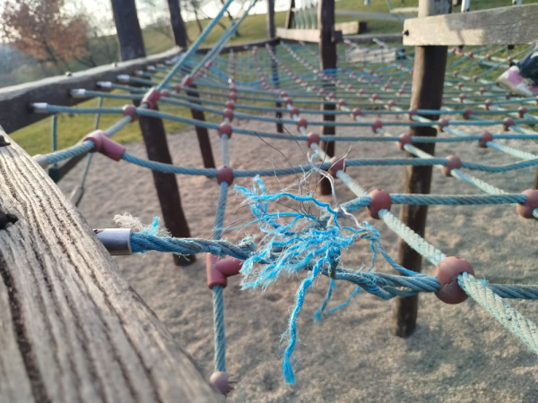 prasklé lano na dětském hřišti nebezpečí popíchání o lakaa