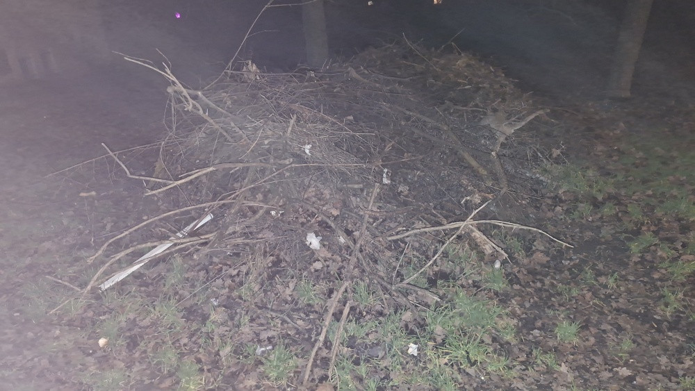Neuklizená hromada větví, kolem které se začínají množit odpadky.