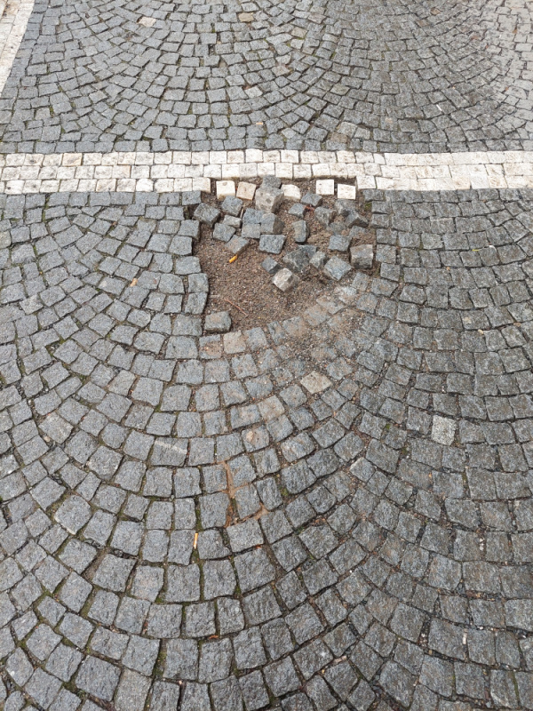 Velká díra uprostřed chodníku. Prosím o opravu. Děkuji