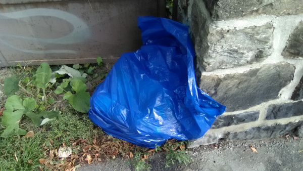 Už několik dní odložený pytel plný zapáchajících odpadků.