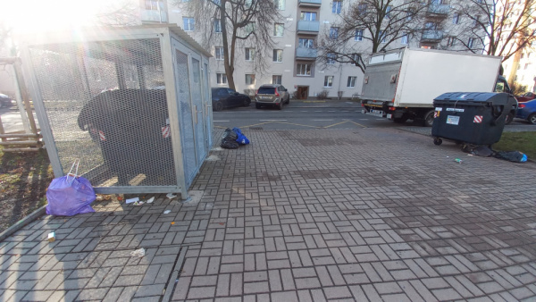 černá skládka u kontejnerů před kolejemi