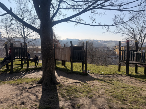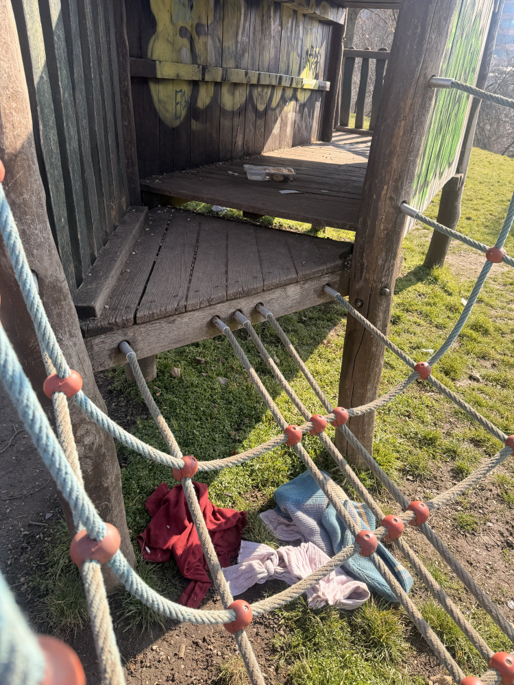 Nepořádek na dětském hřišti.