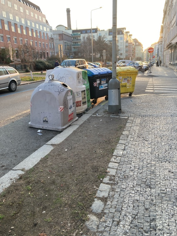 Je treba doladit presun popelnic nanove vyhrazene misto na silnici. Vstup k popelnicim je pres zelen. Ta je jiz ted udusana a zcela znicena.