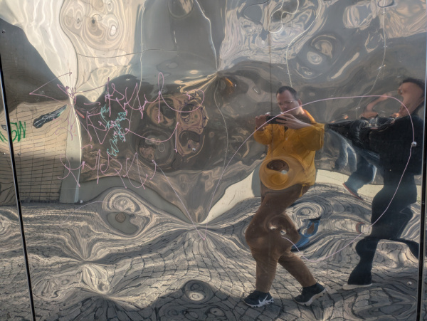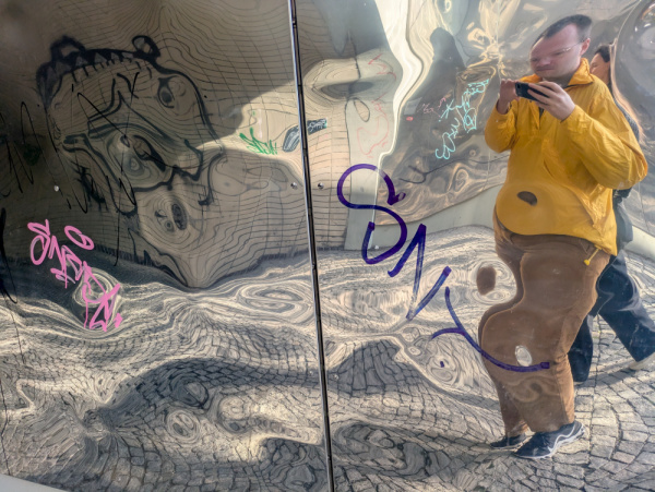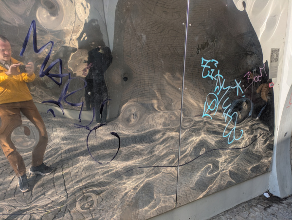 Graffitti a nalepky na umeleckem dile.