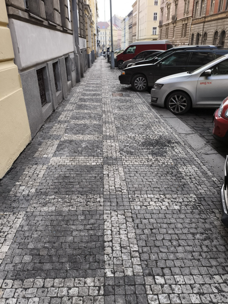 V části ulice (na straně s lichými čísly) Husinecká zůstal neuklizený štěrk na chodníku.
