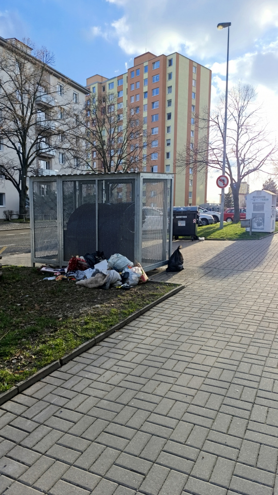 Dobrý den! Znovu na adrese Pod Lípami 2550/56 nepořádek kolem kontejnery. Musí být nějaké řešení problém. Není normálně že má takový bordel každý den.
