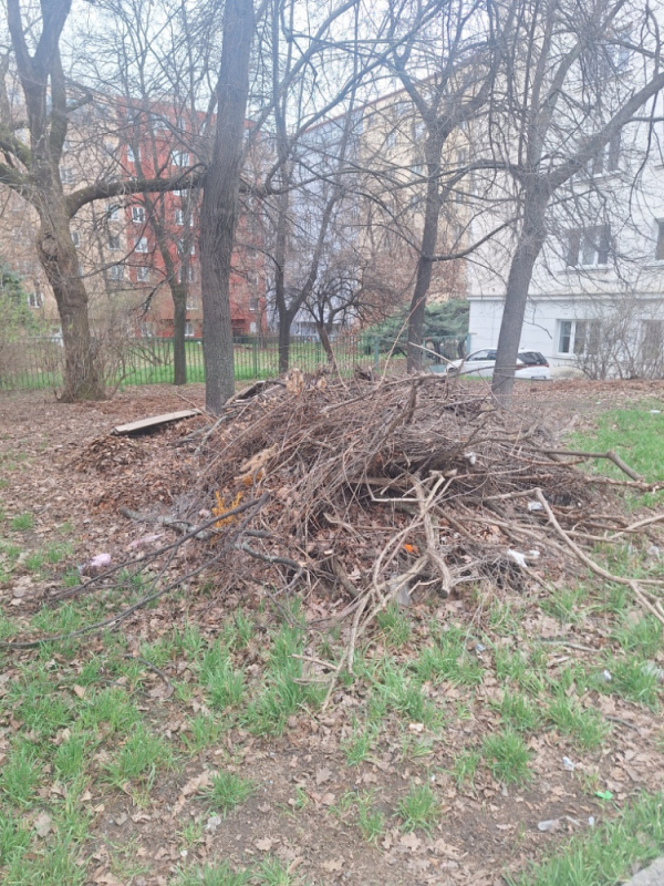 Hromada klestí, ulice Na Vápence, vpravo ve směru k Vozovně