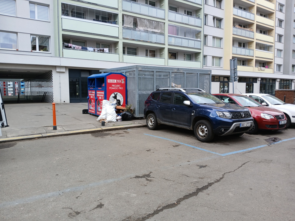 nepořadek u sběrných nádob v Sobeslavská