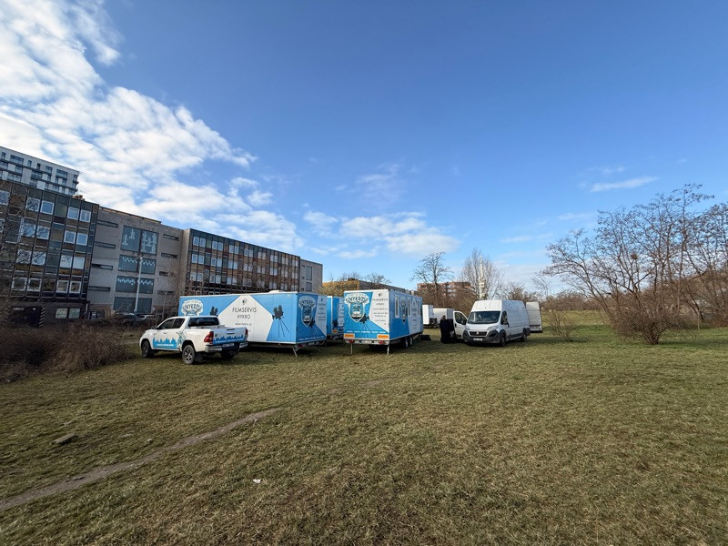 děkujeme za Váš podnět. Pořádek můžeme zajistit pouze na pozemcích ve správě MČ Praha 3. V tomto případě se jedná o soukromý pozemek. Podle obrázku se jedná o filmaře, předpokládám, že mají od majitele pozemku povolení. Děkujeme za pochopení.