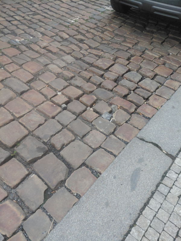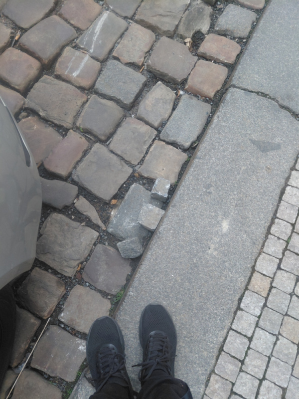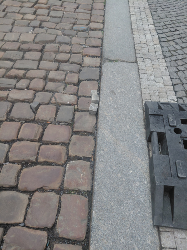 Rozebrané kostky a následné díry na chodníku vedle Zš(boční vstup do školní družiny) kde denně chodí spousta lidí a dětí, kostky jsou rozházené po silnici v půlce Krásovy ulice.