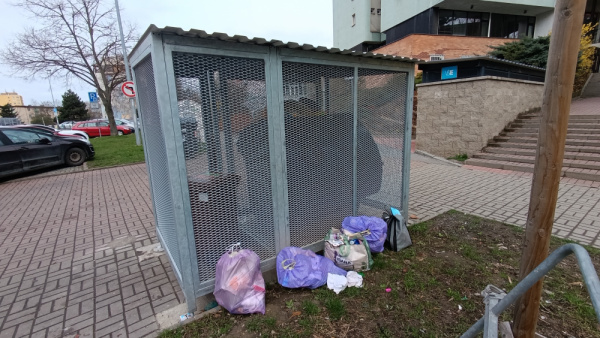 Omlouváme se ale znovu pokračuje ten nepořádek kolem kontejnery na adrese Pod Lípami 2550/56.