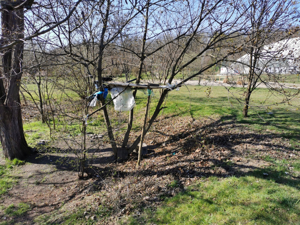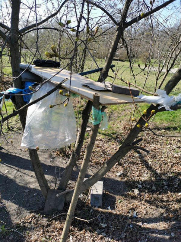 Přístřešek v koruně stromu ve výšce cca 2m.