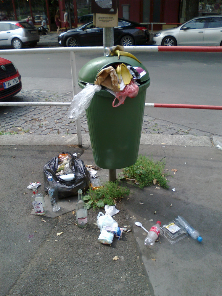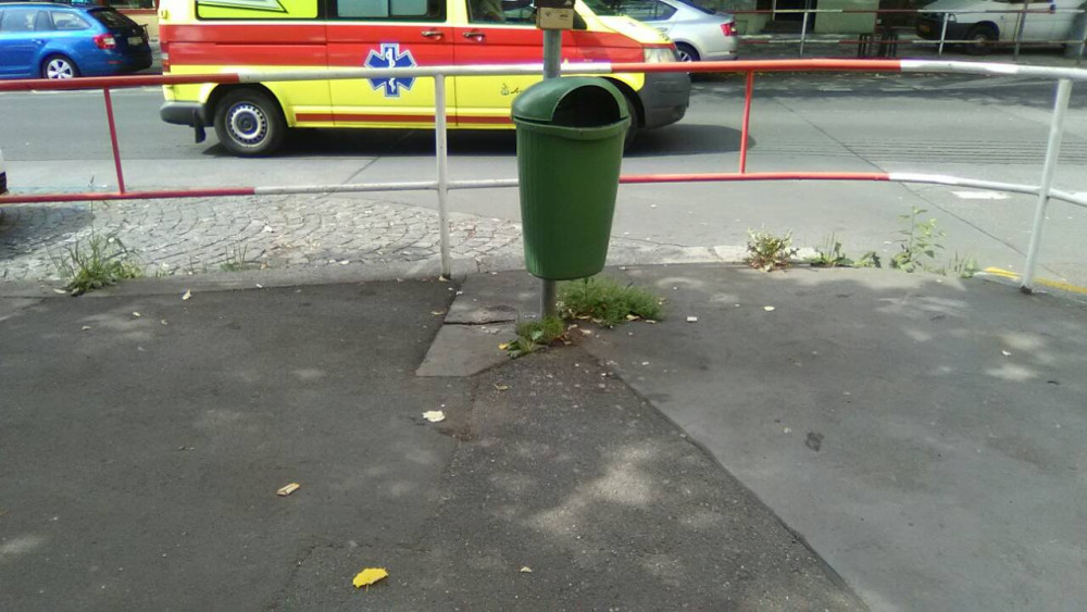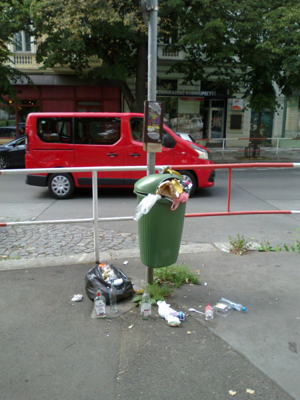 Psí koš, roh Slavíkova a nám. JzP, neděle kolem 13. hod.