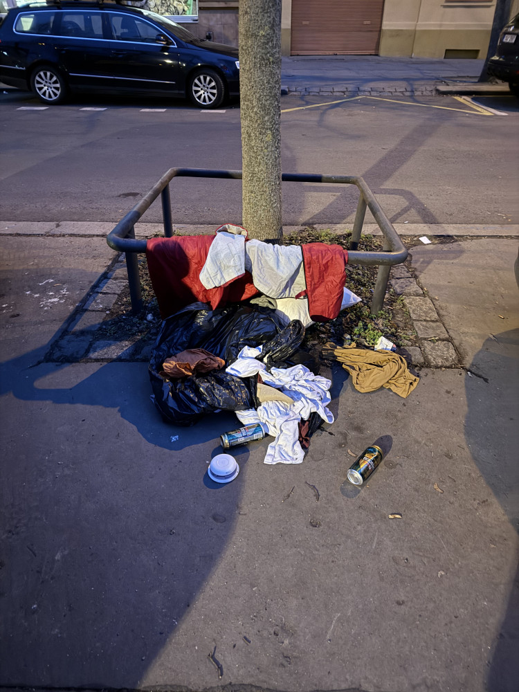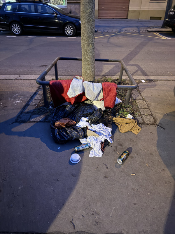 V ulici Fibichova vznikla menší hromada odpadu mezi parkovacími místy pod stromem.