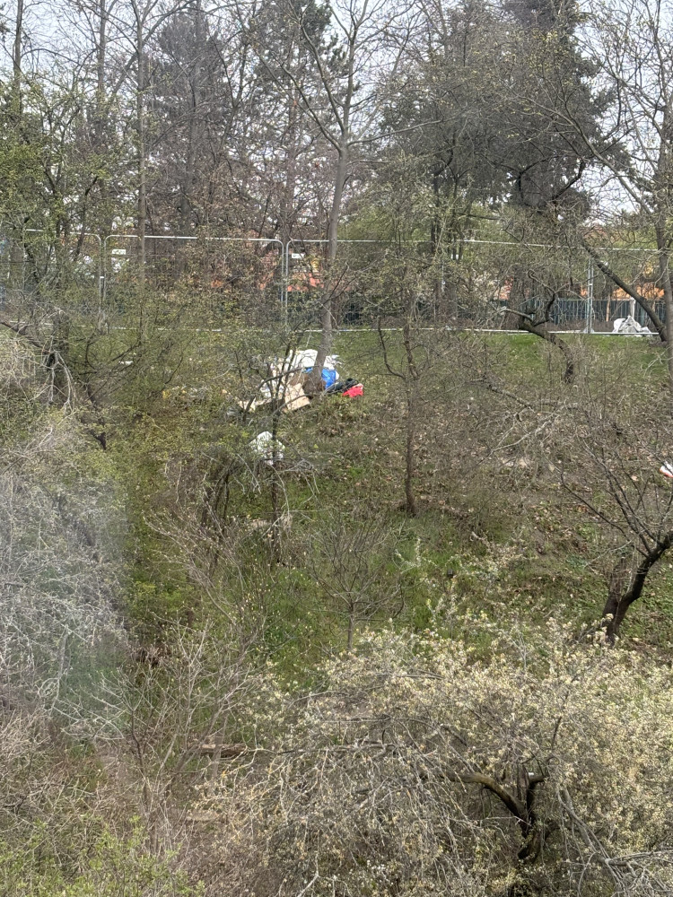 Dobry den, na kraji svahu zidovskych pribyvaji velke, odpadky. Nejspis je tam nechavaji lide bez domova. Odpadu kazdy den pribyva. Vypada to hrozne. Dekuji za uklizeni. Kaletova