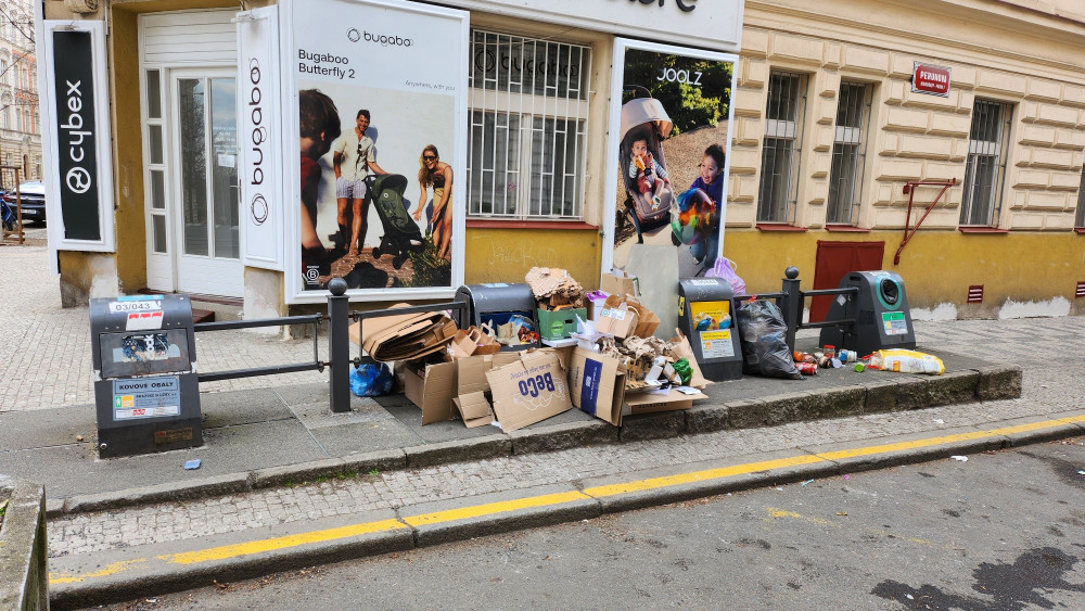 Plné kontejnery. Lidé nechávají odpad kolem.