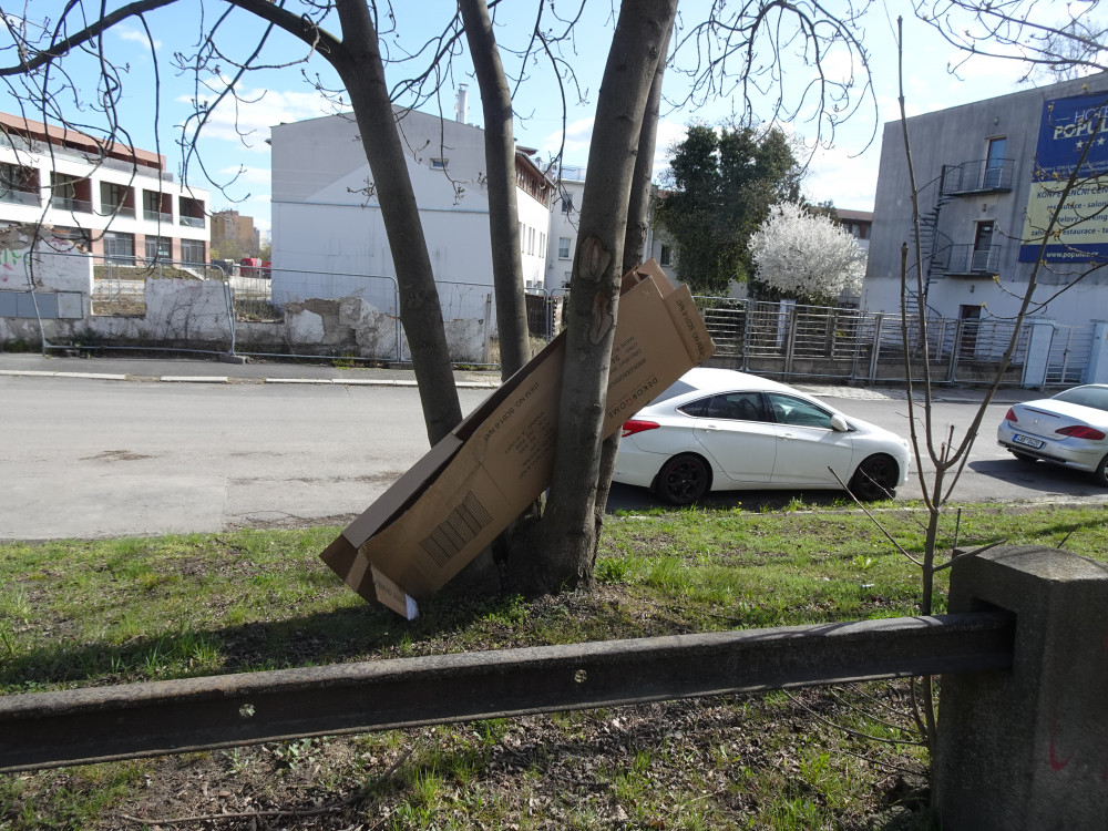u zastavky Malesicka v ulici K Cervenemu dvoru je ve strome vyhozeny veliky karton.
