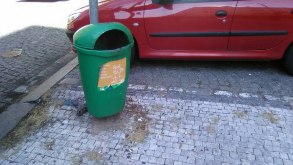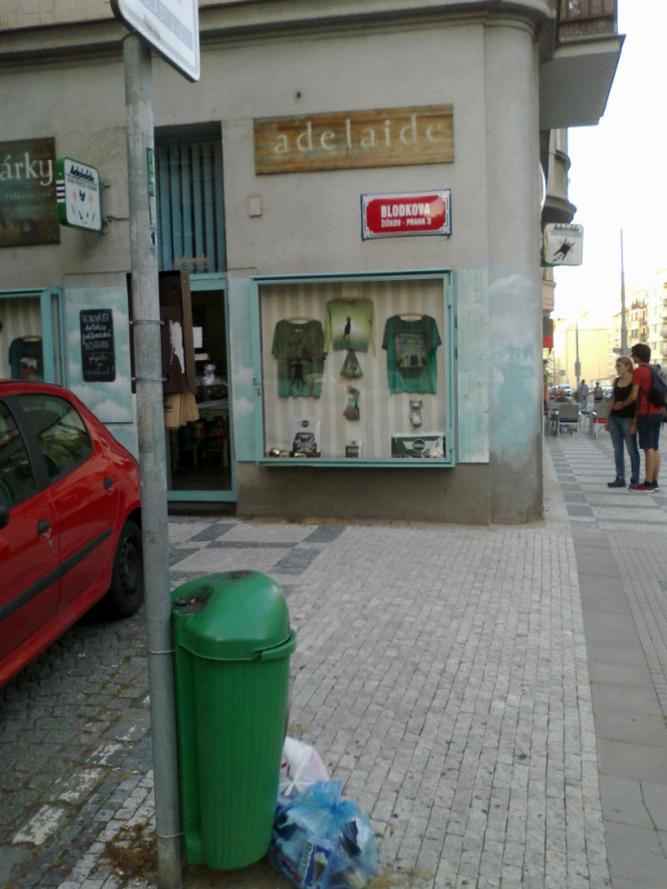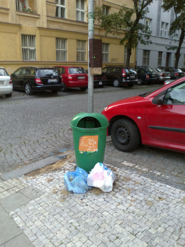 Odpadky u psího koše: roh Ondříčkova a Blodkova.