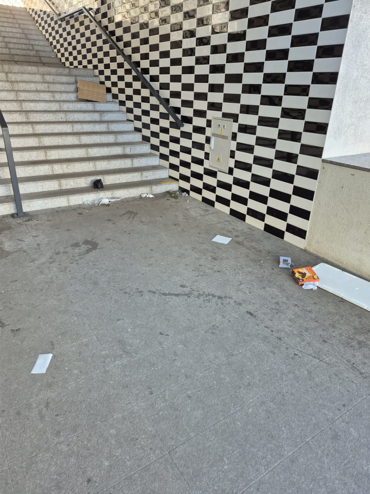 klasicky odpadky na schodech (a taky v celé ulici až k Lucemburské.