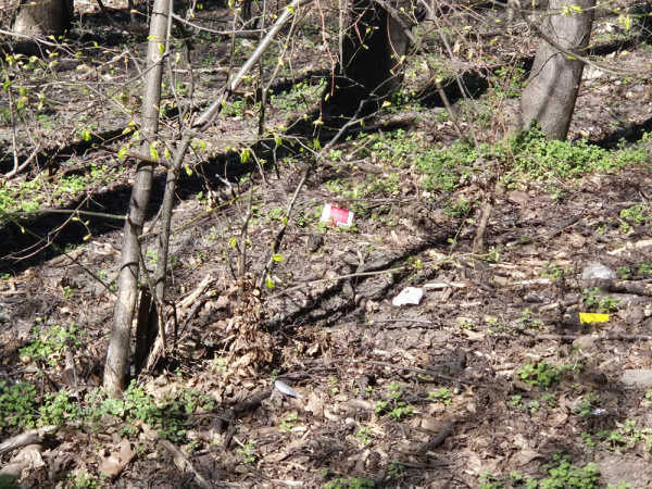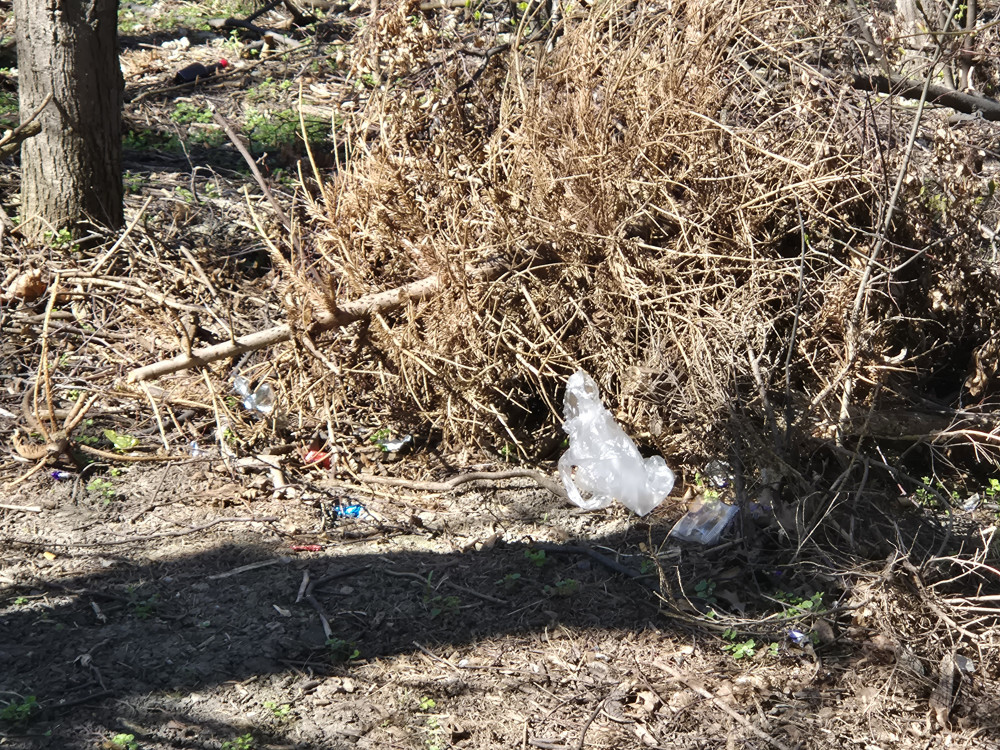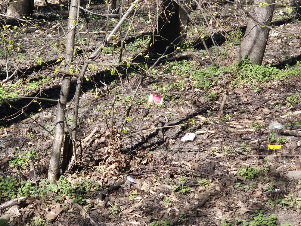 Zřejmě rozfoukané a rozházené odpadky po celém okolí lesoparku. Je jich mnoho, bylo by to 100 fotek. Dávám jen 2.