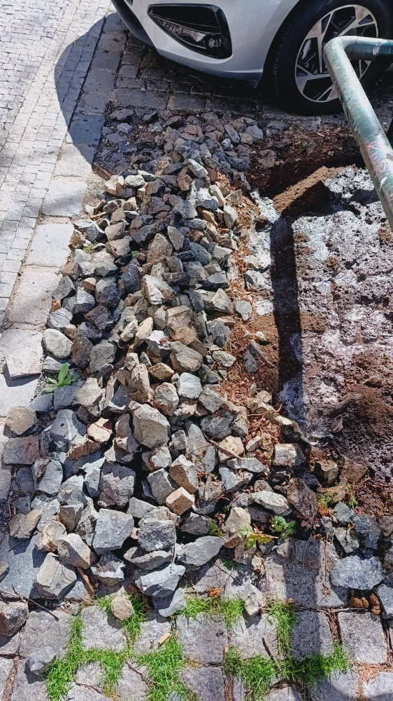 prosím o odvoz kameni, které nám tady kdysi ke stromům nechala nasypat starostka Hujová. Ne shrnovat zpátky! Snažíme se to tady mít trochu hezčí a vypěstovat kytky. děkuji mockrát