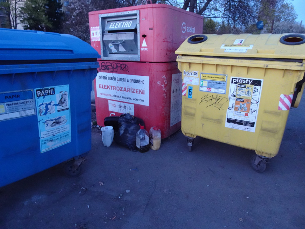 v ulici Malesicka u Penny je vyhazena elektronika u kontejneru a u kontejneru jsou 2 nadoby s neznamou chemickou latkou, asi neco do auta. Prosim o uklid aby nedoslo ke znecisteni prirody.