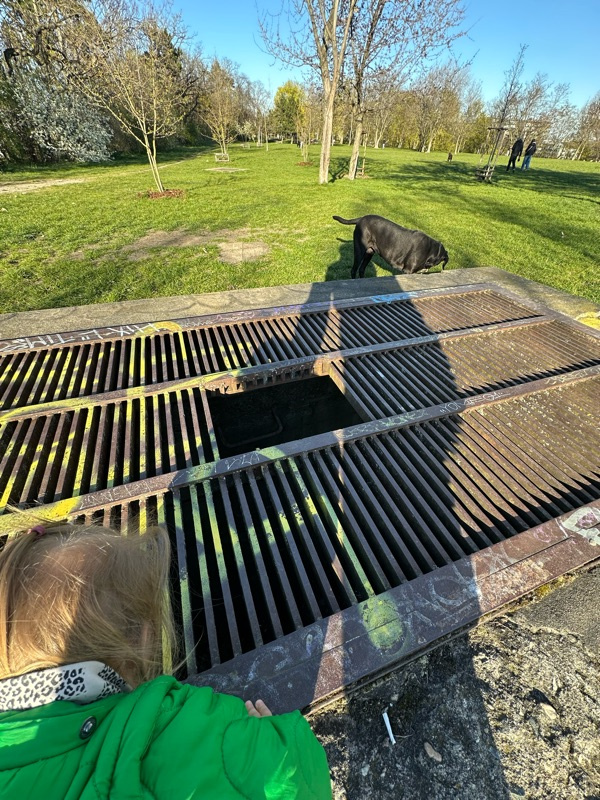 Nebezpečná díra vedoucí do díry, podle mě je to tam takhle docela krátce. Pod tou mříží je dost hluboká ďoura plná bordelu, což by vlastně taky stálo za to vybrat.