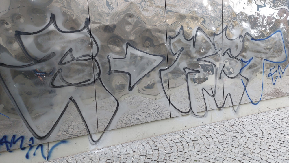 Posprejované Zrcadlení u tunelu do Karlína.
