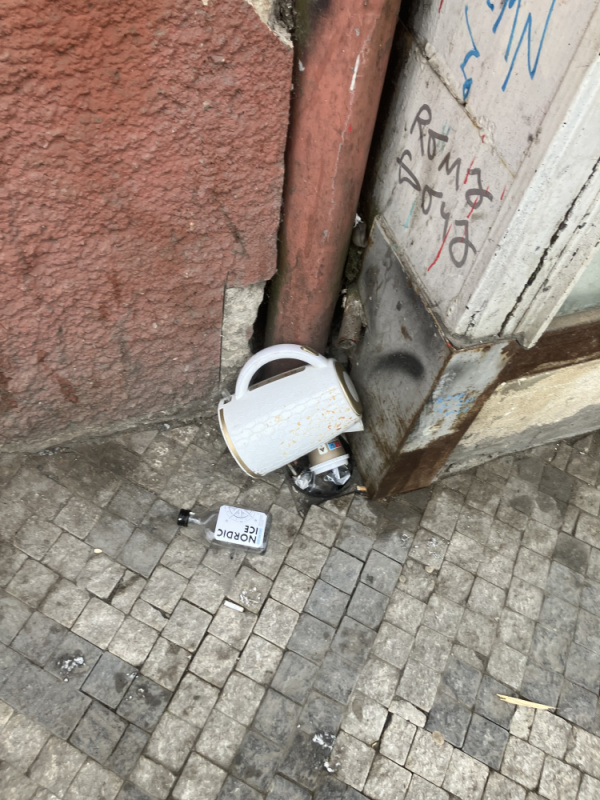 Leží na ulice konvice už několik týdnů. Hartigova 106