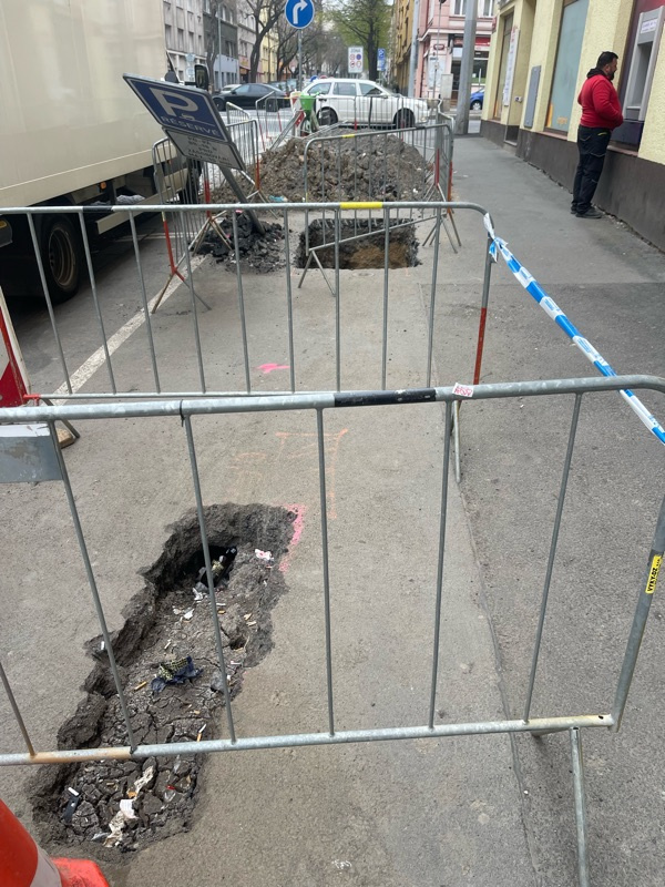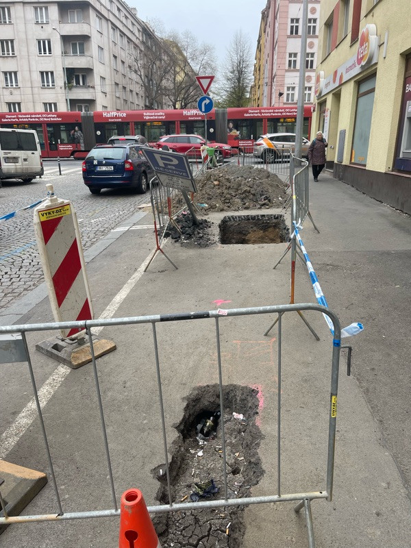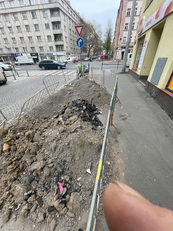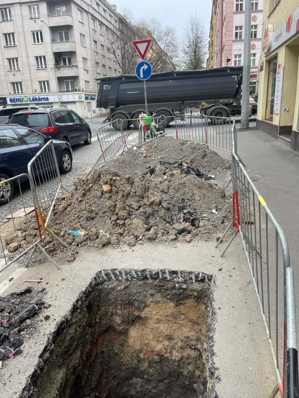 V Biskupcove 6 cca 3 m od Zelivskeho ul je jiz temer medic ( od 26.3.) otevreny cca 2,5 m hluboky vykop a hromada zeminy blokujici uplne zbytecne 3/4 sirky chodniku. Dle vasi informace z 3.4. se zde ma provadet protlak kabelu 22kV. Ubehlo dalsich vice nez deset dnu a nic se zde nedeje. Z vykopu se pomalu ale jiste stava odpadni jama, zeminu viri vitr a prach lete v cele ulici. Je to ostudna “koordinace” praci. To kdyby udelal soukromy vlastnik domu tak by jiz dostal pokutu a vylo by s nim zahajeno spravni rizeni. Tato “ stavba “ neni navic vubec nijak oznacena, kdo je stavebnik, zda byl povolen zabor chodniku a na jak dlouho. Vykop je navic velice chatrne “zabezpecen” proti padu kolemjdoucich kteri se v uzkem prostoru mezi domem a zabranou navzajem vyhybaji. Zadam UMCP3 o okamzite reseni tohoto stale trvajiciho omezeni s prislusnymi organy- TSK, odbor dopravy, OZP, PRE a.s.