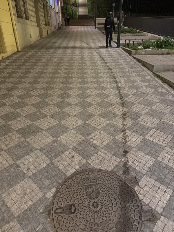 Skvrna pravděpodobně od oleje od shora náměstí až dolu.