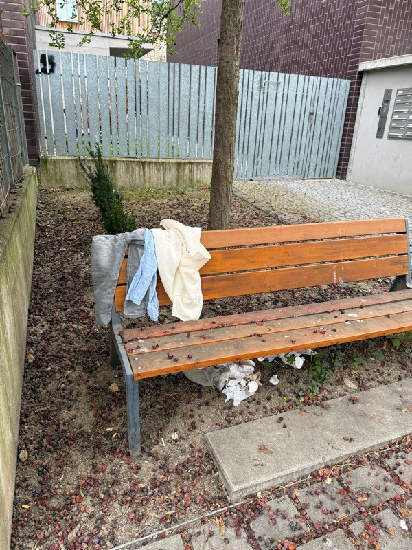 Lavicka s neporadkem a odpadky