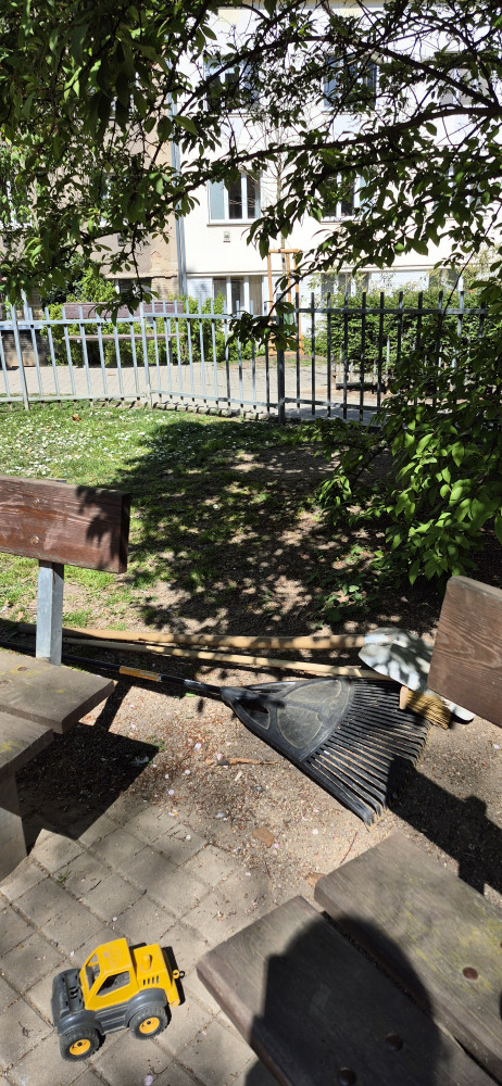 Někdo z údržby si asi na hřišti zapomněl nářadí, tak ať si ho vyzvedne než to seberou děti