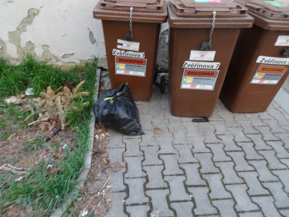 vedle hnedych popelnic na bio odpad je cerna taska, prosim o uklid.