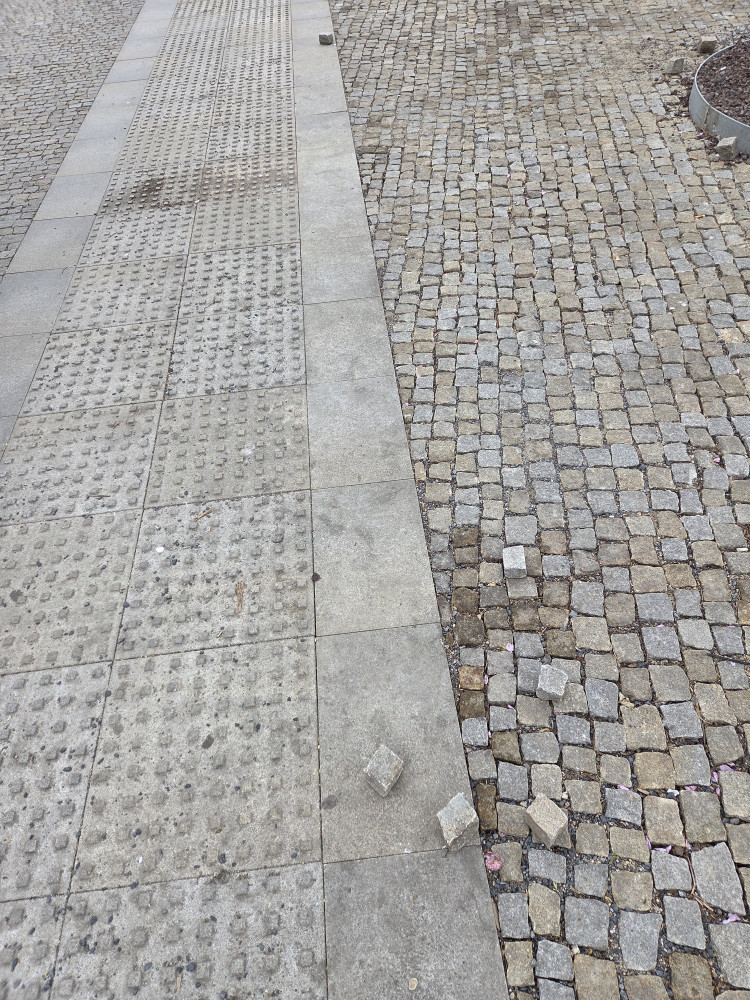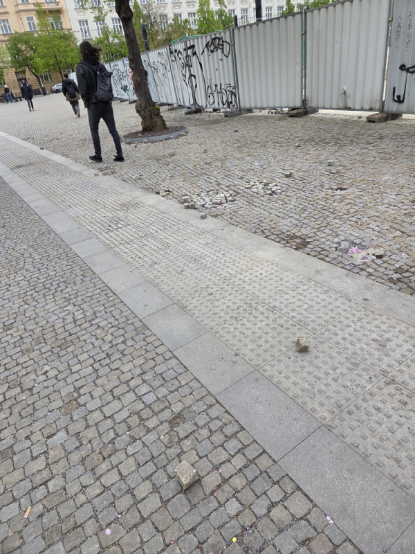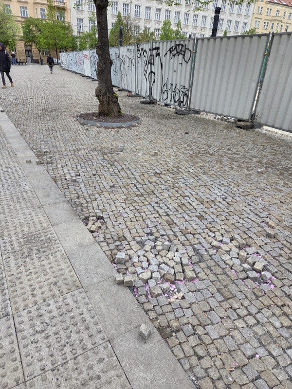 Hned pri vstupu do metra JzP smerem ke skole jsou rozhazene kostky u nove rozsireneho chodniku jiz delsi dobu. A hrozi, ze si o ne nekdo ukopne palec.