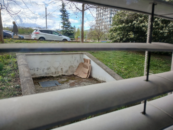 u polikliniky Olšanska ve vyklenku v trávě povalujici se kartony