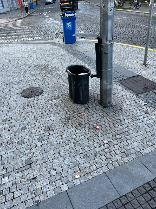 Dobrý den, již několikátý týden je sundaný koš i zaměstnanec pražských služeb se pokoušel jej zpět pověsit, marně. Někdy ani nestojí je povalený a odpadky jsou na chodníku. Vypadá to jako u domu v ulici Siwieka bývalého ústavu totalitních režimů, kde je neskutečný nepořádek a kde za pomníkem opět spí dva homelessové.